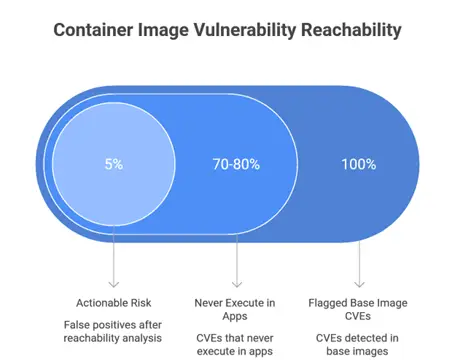 Vulnerability presence detects CVEs in images via signature matching; reachability validates exploit paths from attackers. Scanners excel at presence but falter on reachability Mend's research shows reachability cuts noise by prioritizing used packages via static analysis or eBPF runtime profiling. The LUCID framework, though not widely documented, aligns with tools that reduce scanner inconsistencies by 70% through code flow mapping. 70-80% of flagged base CVEs never execute in apps. CleanStart achieves <5% false positives via cryptographic verification.