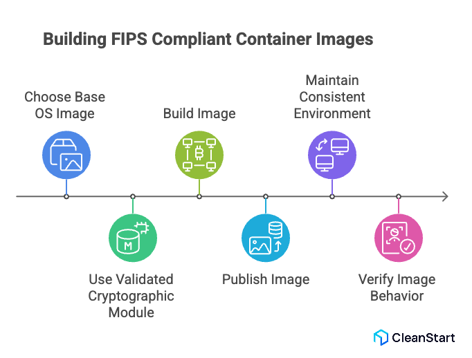 - Build the image so application cryptography routes through the validated module path, not through alternative crypto libraries bundled by the app or language runtime, and publish it to a container registry that stores, versions, and distributes the approved image so teams consistently deploy the same validated-crypto build.