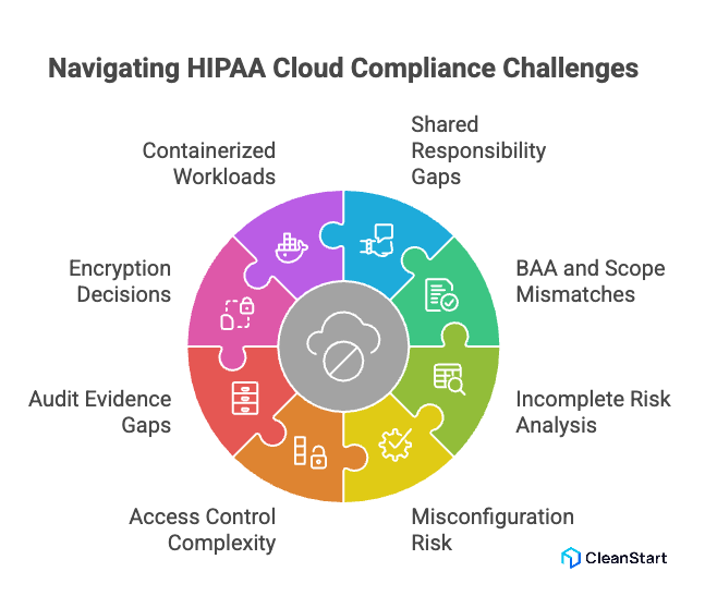 - Misconfiguration risk at scale: Cloud compliance challenges often come from identity, network, and storage misconfigurations that expand access paths and weaken security controls intended to prevent improper exposure of ePHI.