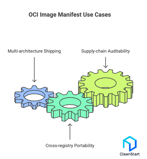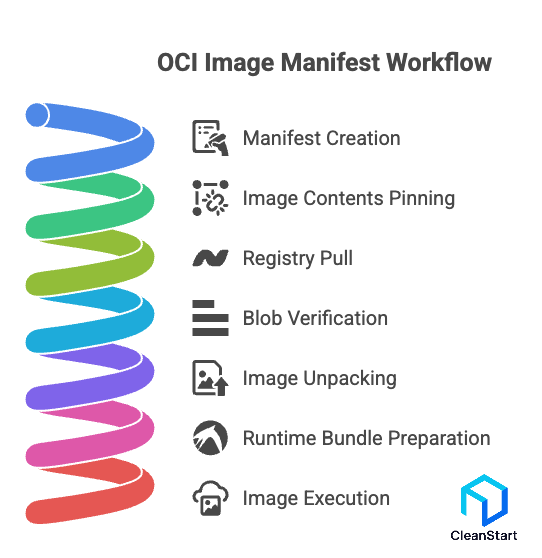- Enables registry pull and integrity verification: a high-level OCI implementation would download an OCI image by fetching the manifest from a registry first, then pulling the referenced blobs. Each blob is verified against its digest, which prevents silent corruption during transfer. This is the same workflow you use when using Docker to pull images, because modern tooling follows industry standards for content-addressed artifacts.